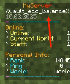 在上方图片中,可以看到箭头所指一行是 %vault_eco_balance%
