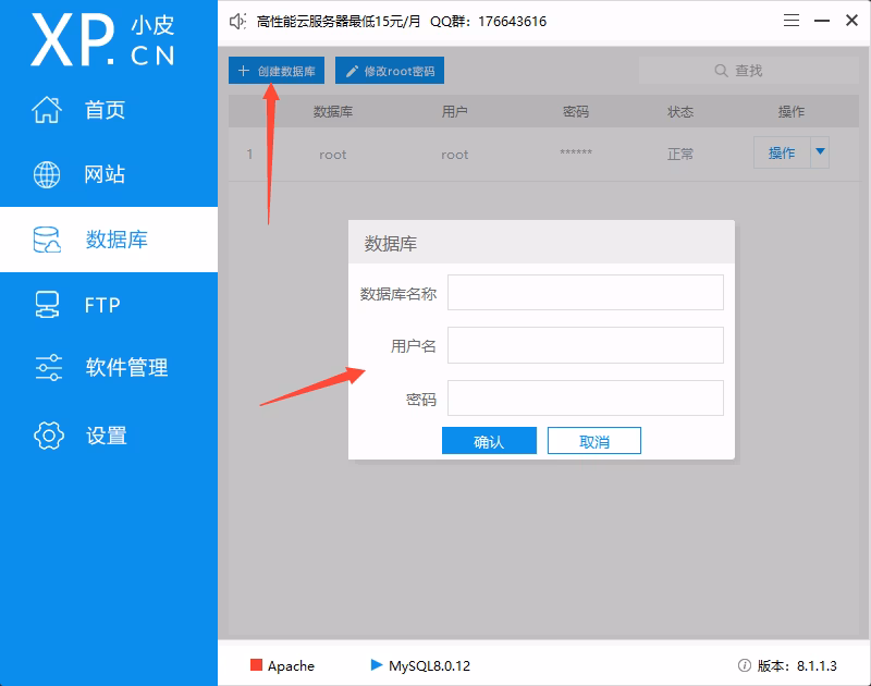 然后你就可以建数据库了,建好之后把你填这里的信息填到插件的配置文件里